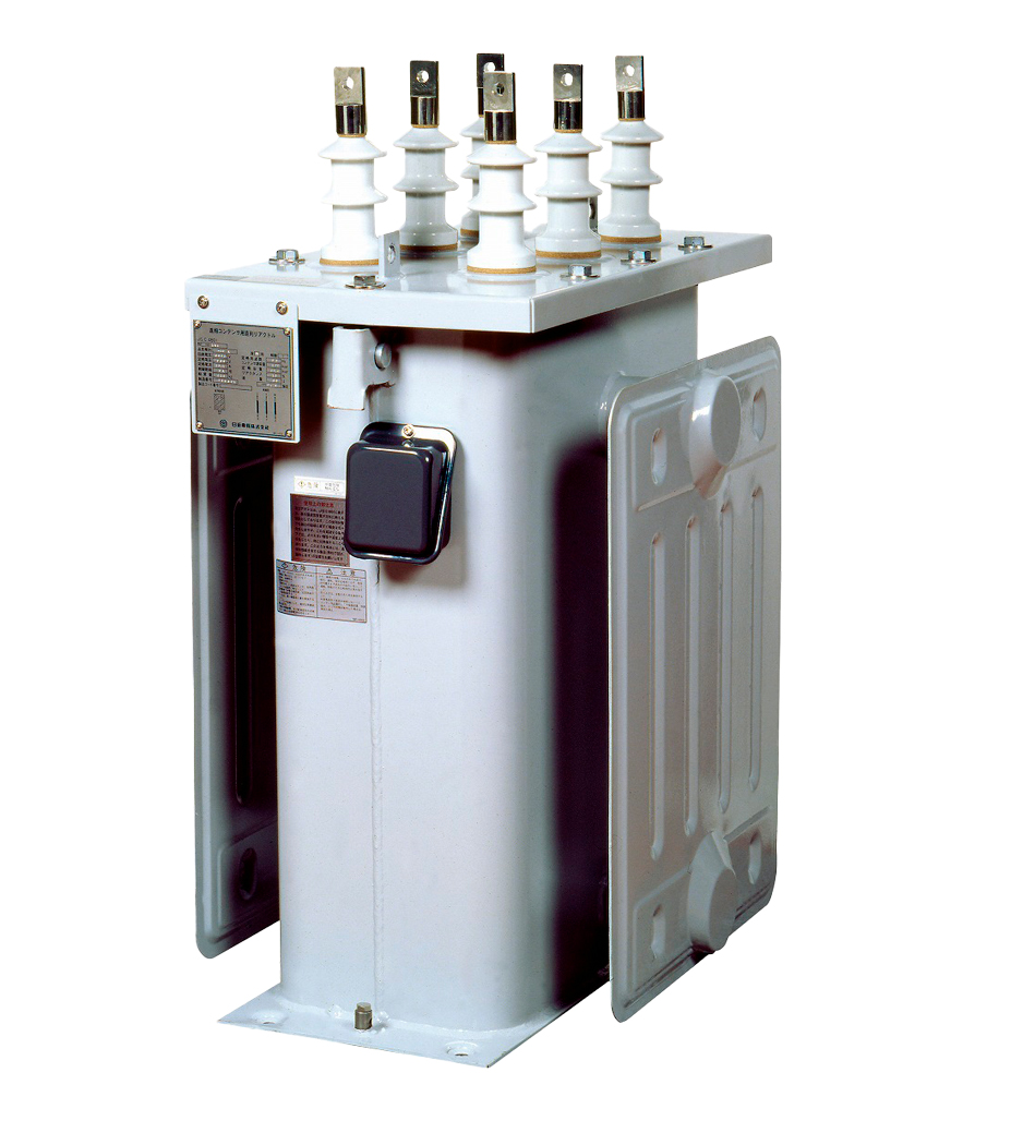 油入直列リアクトルとは、コンデンサに直列に接続され、電力系統に存在する高調波の抑制や電力コンデンサの開閉による過大な電圧・電流などを防止する機器です。